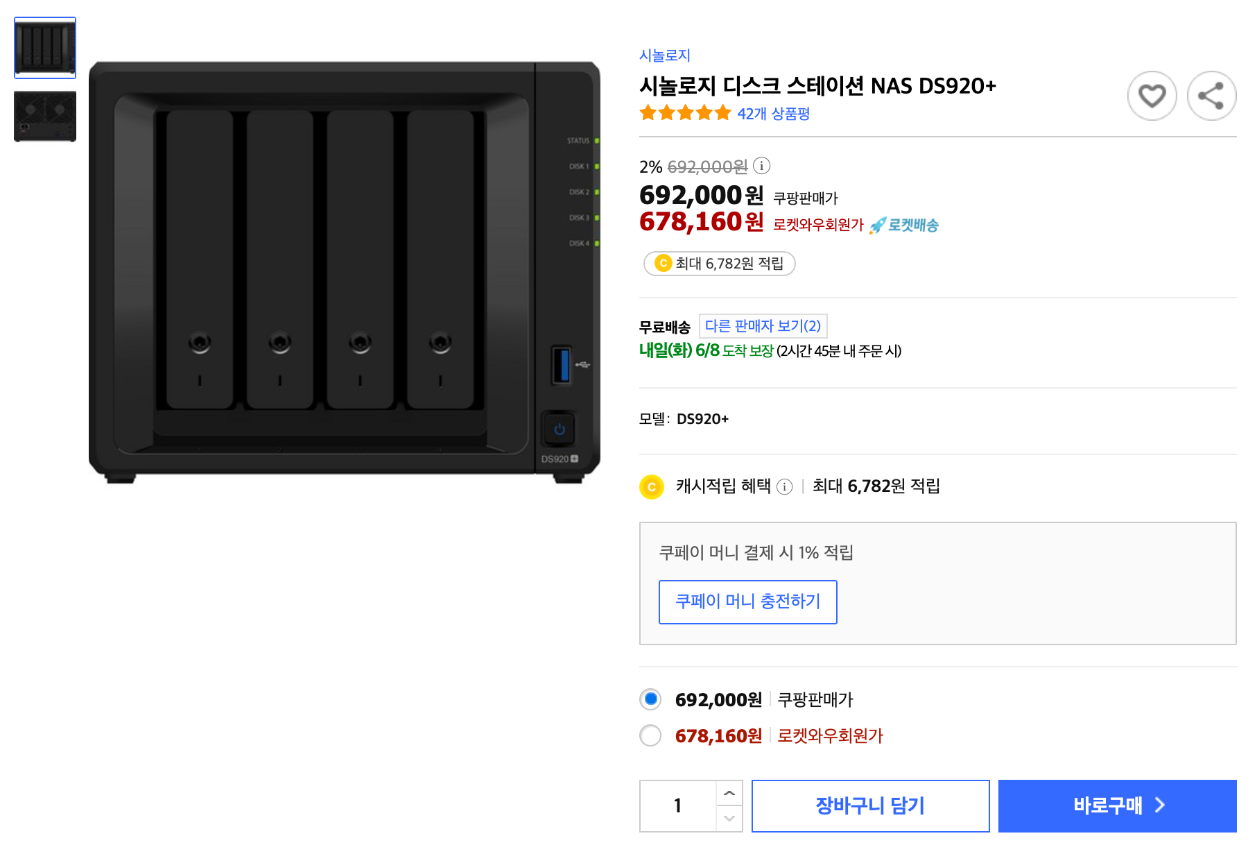 당근마켓에 DS918+ 2TB*4 구성이 70만원에 올라온게 있는데 일단 그걸 써보다가 필요하면 나중에 업그레이드를 해 볼까 싶기도 하고요.