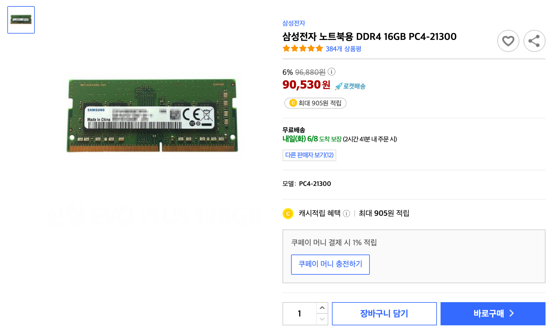 삼성전자 노트북용 DDR4 16GB PC4-21300