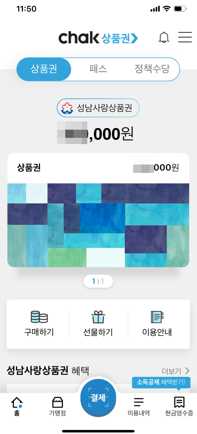용인에서 잘 사용하고 있긴 하지만 사실 성남에 있는 회사를 다니고 있기에 평일 저의 대부분의 시간은 사실 성남에서 보냅니다. 그래서 성남 경기 지역 화폐를 사용할 방법이 없을까 했는데 성남시는 경기지역화폐 앱이 아니고 chak이라는 앱을 별도로 만들어서 사용하고 있더군요.