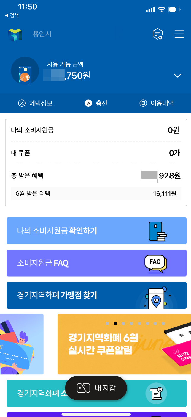 사실 저는 용인 시민이기 때문에 용인 와이 페이 카드를 발급받아서 사용하고 있긴 한데요.