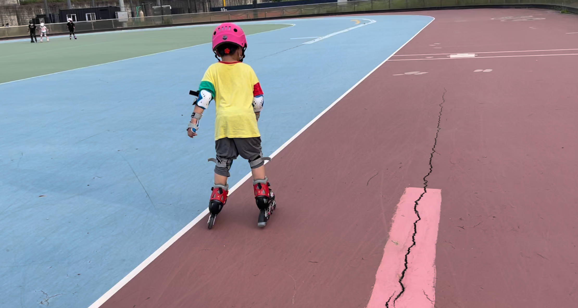 수지레스피아 체육공원 인라인스케이트장에 살짝 아쉬운 점은 몇몇 군데 바닥에 크렉이 생겨있더군요.