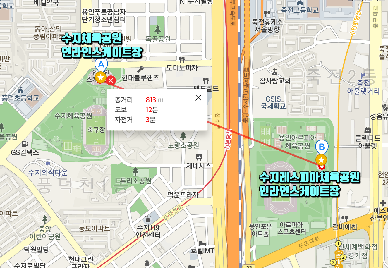 지난번에 갔던 수지 체육공원 인라인스케이트장과 멀지 않네요.