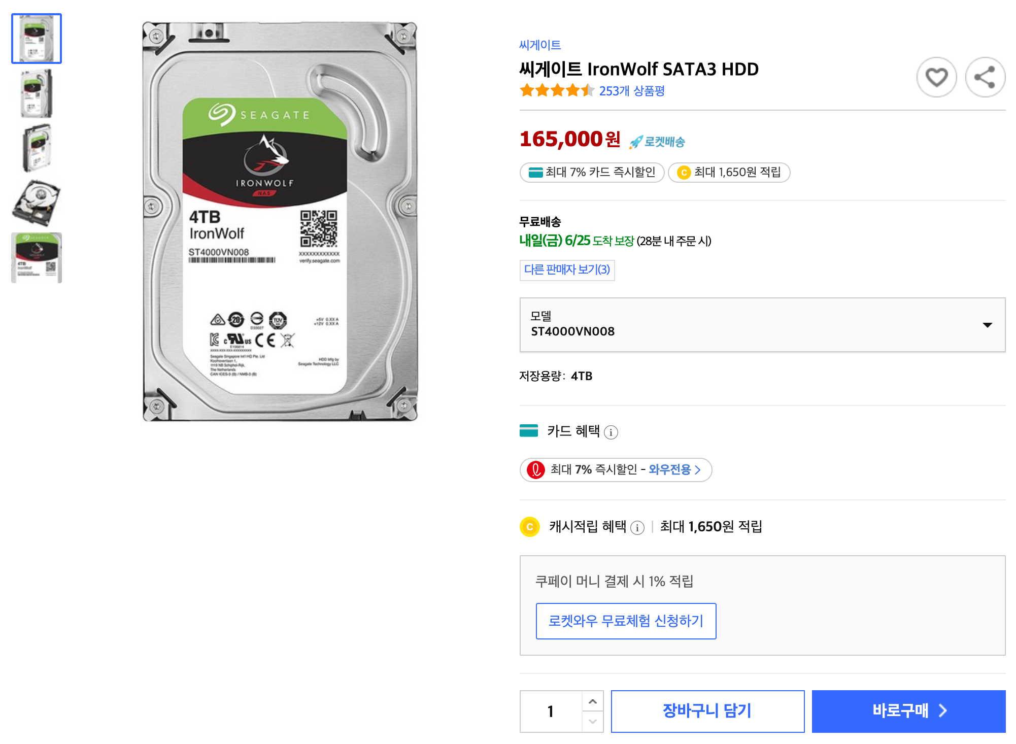 HDD는 고민하다가 결국 아이언 울프 4TB 4개를 구입했습니다. HDD가 도착하면 RAID 5로 구성할 생각입니다.