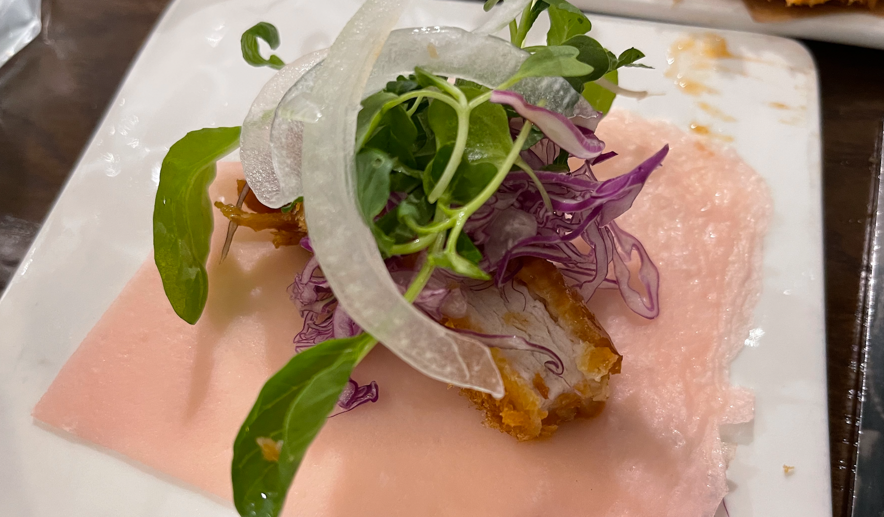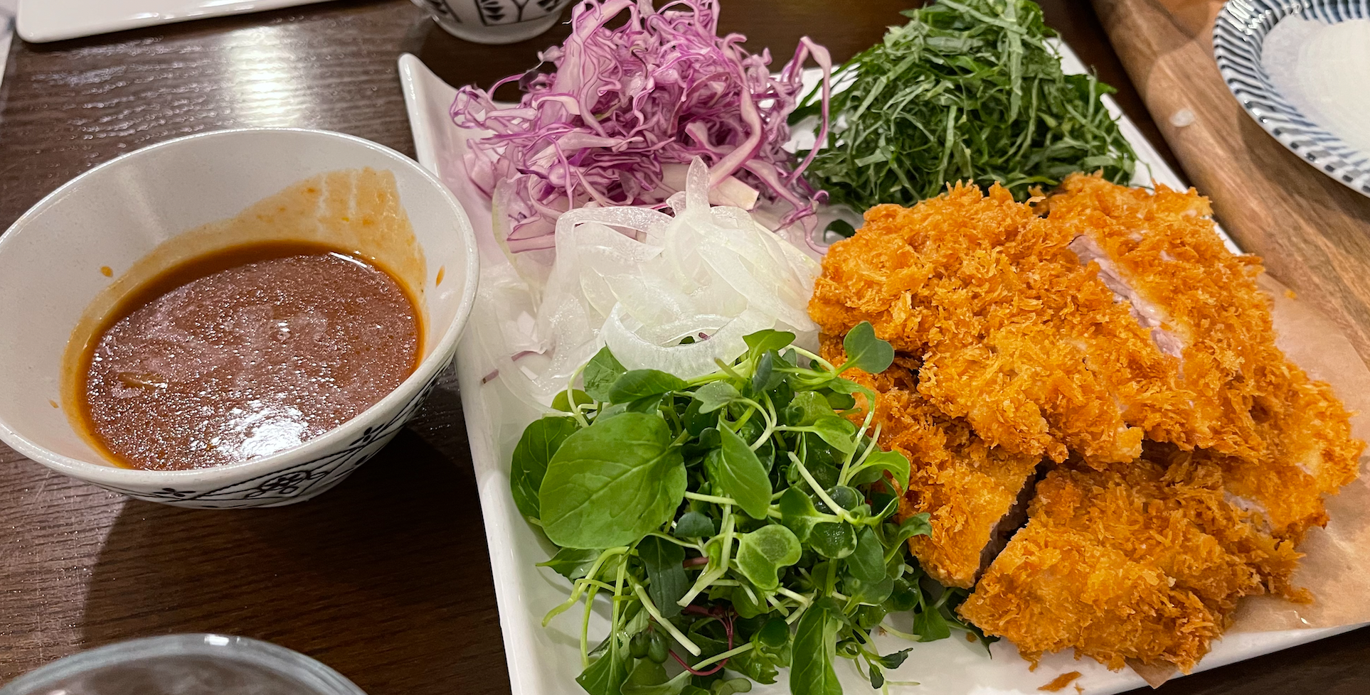 마싯내 돈가스는 "쫀득한 밀전병에 야채를 싸 먹는 돈가스"라고 적혀있습니다. 밀전병에 싸 먹는다니 상상이 안 갔습니다.