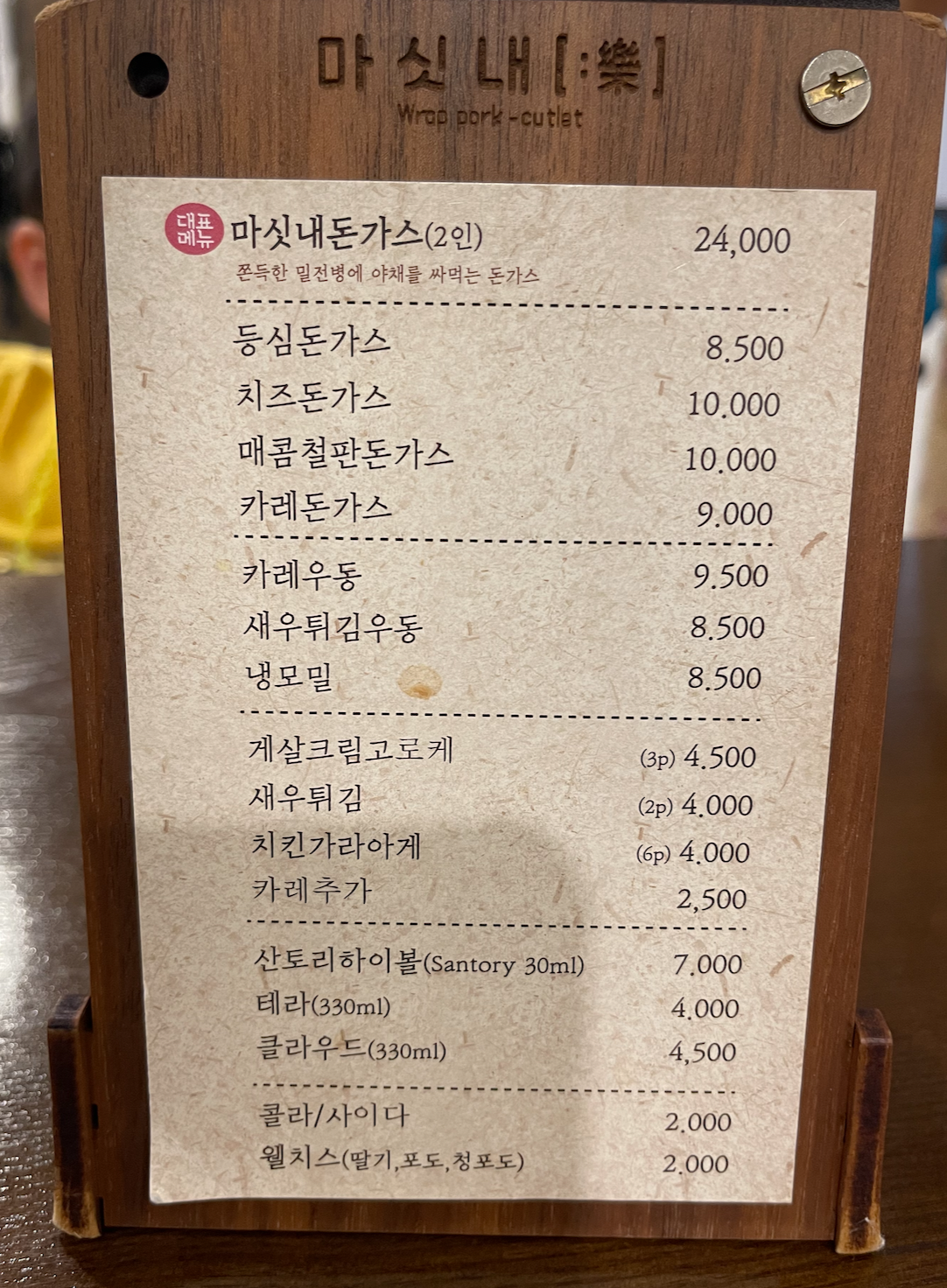 자주 오긴 힘들 거 같으니 조금 비싸 보이지만 대표 메뉴인 마시내 돈가스를 하나 주문하고 양이 부족할 거 같으니 등심 돈가스를 추가로 주문했습니다.
