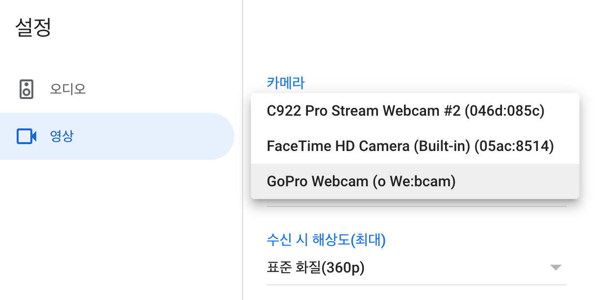 OSX - GoPro WebCam 삭제 후 제거 되지 않던 카메라 목록 제거 본문