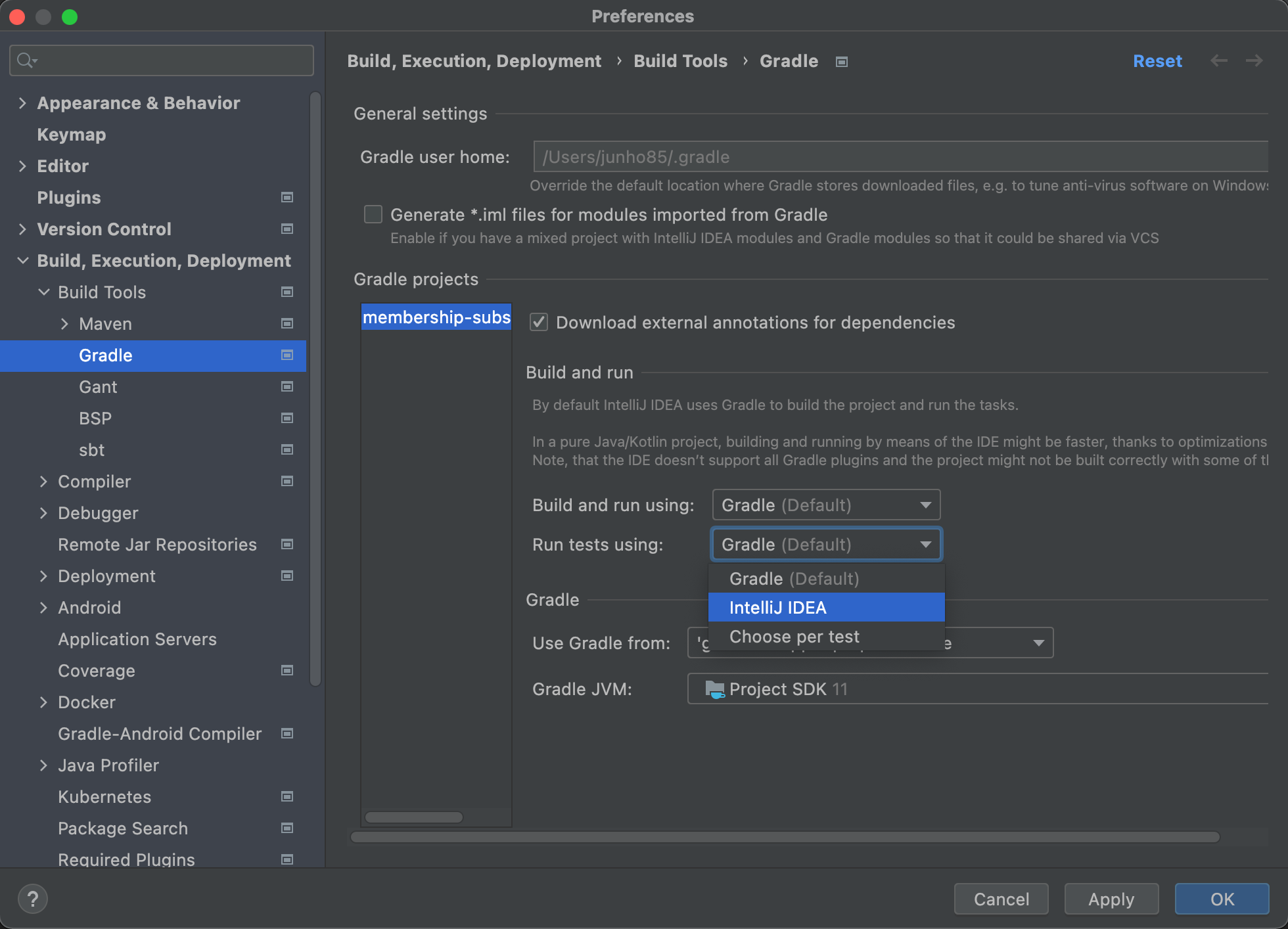 IntelliJ에서 JUnit 테스트가 느릴때 속도개선 - 매번 Gradle 빌드하고 있다면 본문