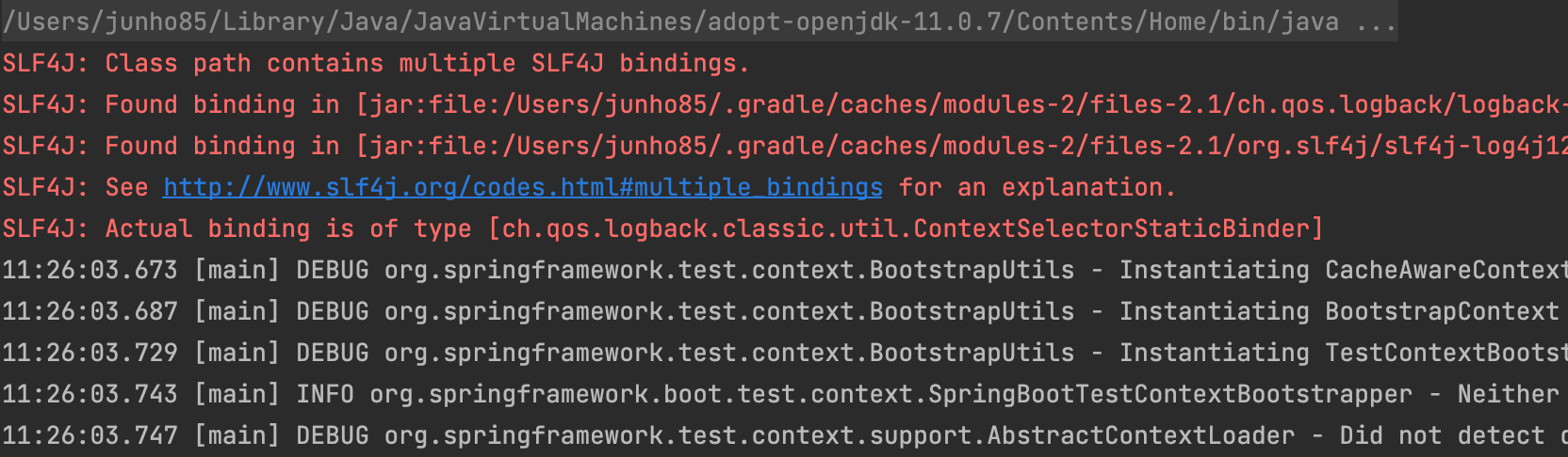 하나가 해결되니 이제는 스프링 콘텍스트 로딩 시간이 긴 부분이 걸리네요. 요건 잘 보고 스프링 콘텍스트 로딩이 필요 없는 테스트는 좀 정리해봐야겠습니다.