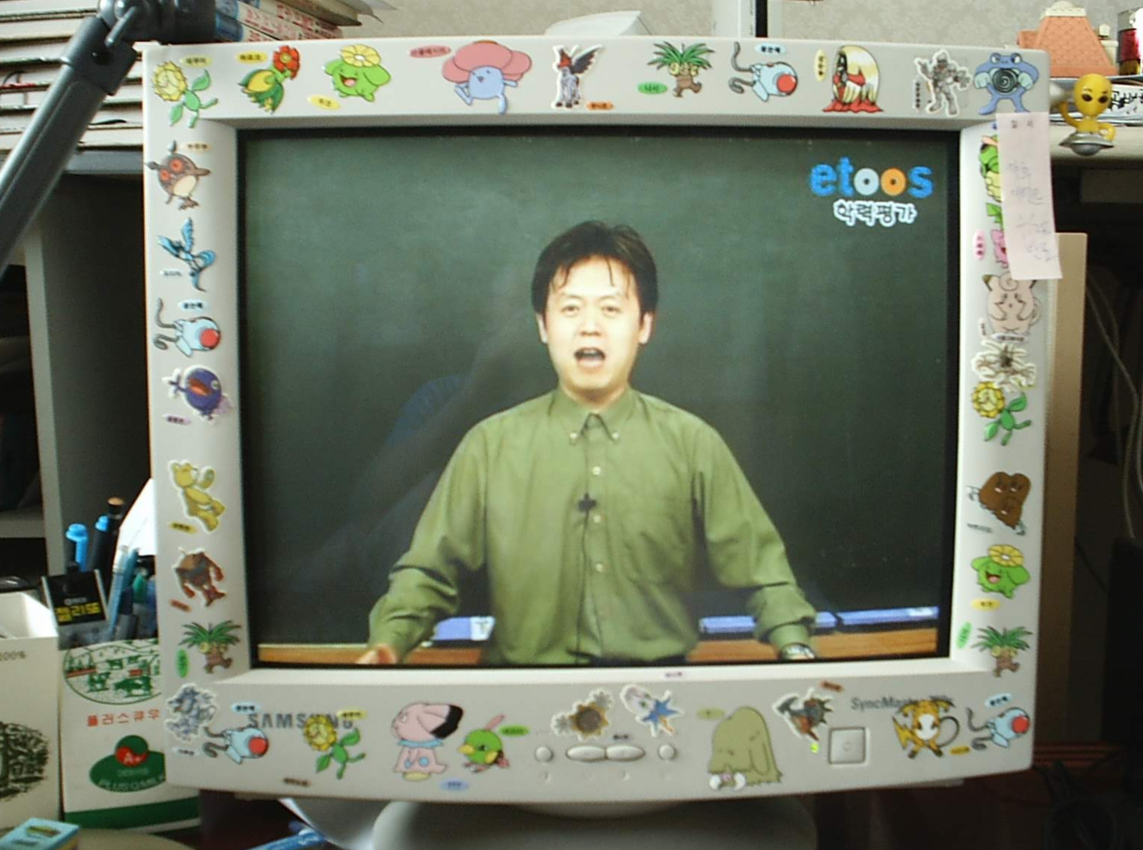 CRT 모니터를 수놓은 포켓몬 띠부씰이네요. 이 사진은 고3시절 제 모니터의 모습입니다. ^^; 스티커 잔뜩 붙여둔 모니터로 강의 보고 있는 게 지금 보니 신기하긴 하네요.