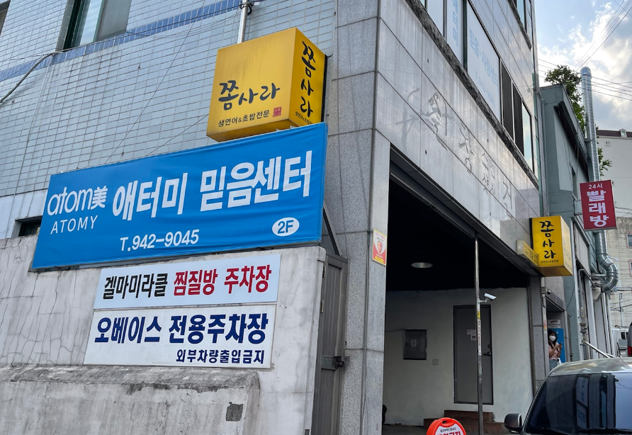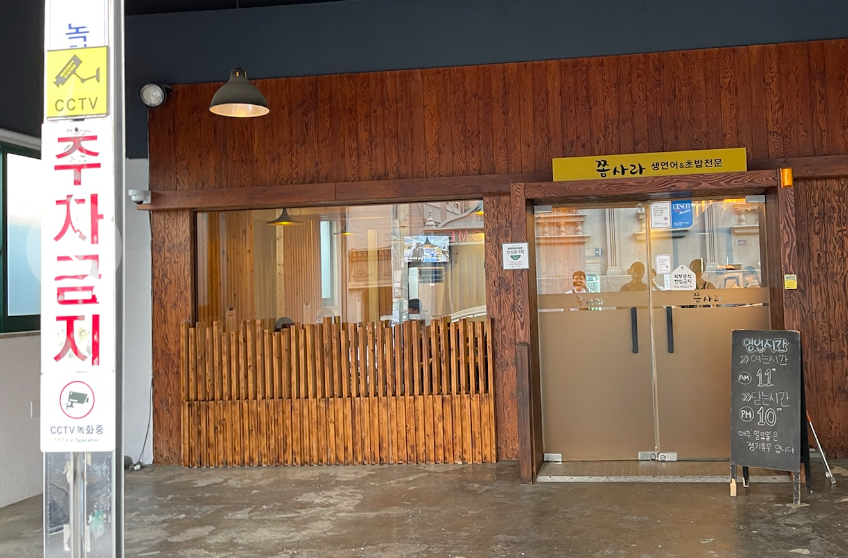 밖에서 가게가 잘 눈에 띄지 않는데요. 정사각형 모양의 노란색 간판을 찾아야 합니다.