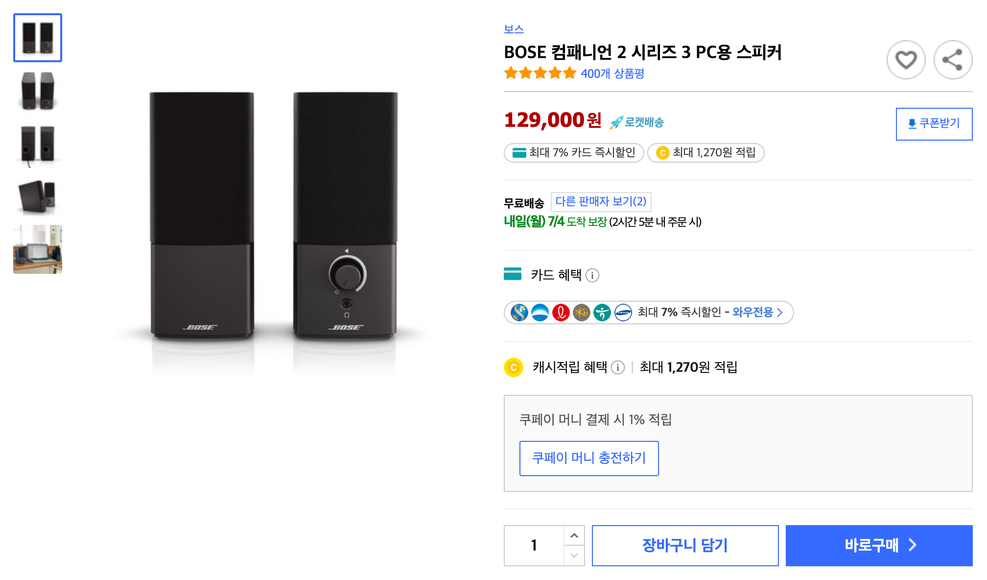 집에서 맥북 사용 시 모니터를 덮고 데스크톱처럼 사용하는 클램쉘 모드로 해서 사용 중인데요. 맥북을 좌측에 두고 사용하다 보니 소리가 좌측에서 들리는 것이 좀 거슬렸습니다. 그래서 정면인 모니터 쪽에 두고 사용할 스피커를 언젠가 사야지 하다가 우연히 Boss C2S3가 눈에 띄더군요. 10만 원 초반대로 가격대가 괜찮아 보여서 구입을 하게 되었습니다. 인터넷 최저가로 12만 9천 원 정도 했었습니다.