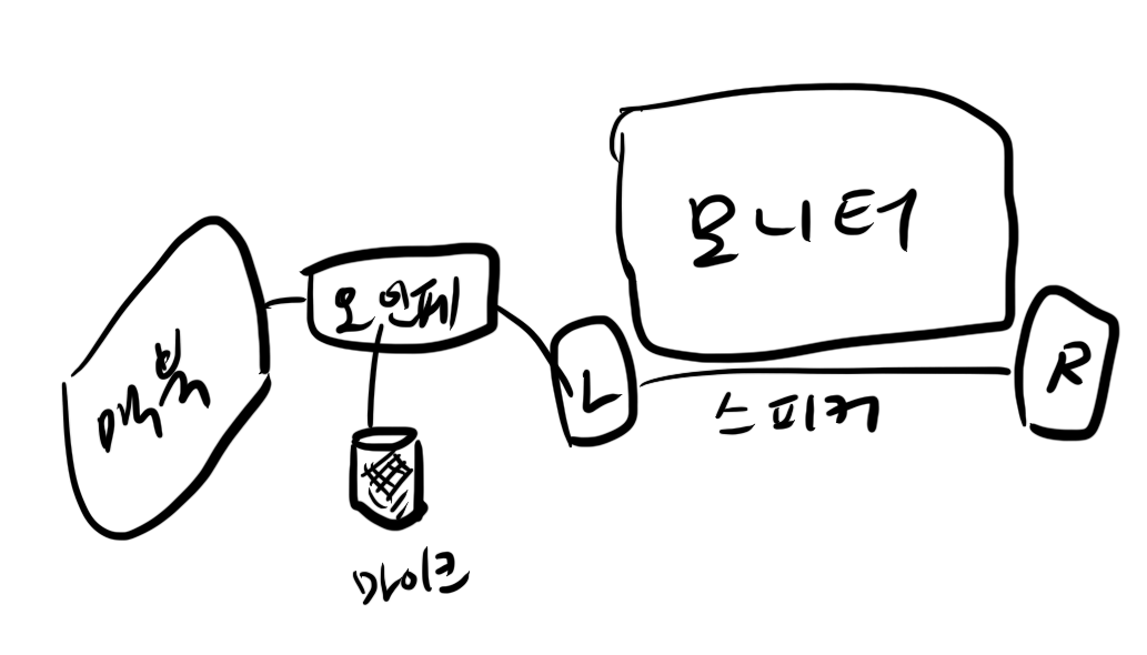 Boss C2S3를 어떻게 잘 조정하다 보면 좀 더 만족스러운 설정을 할 수 있었을지도 모르겠습니다. 하지만 제 실력이 부족한 탓인지 노력 대비 성과가 안 나와서 그냥 애들 방에 세팅해 줬던 저렴이 스피커를 들고 왔습니다.