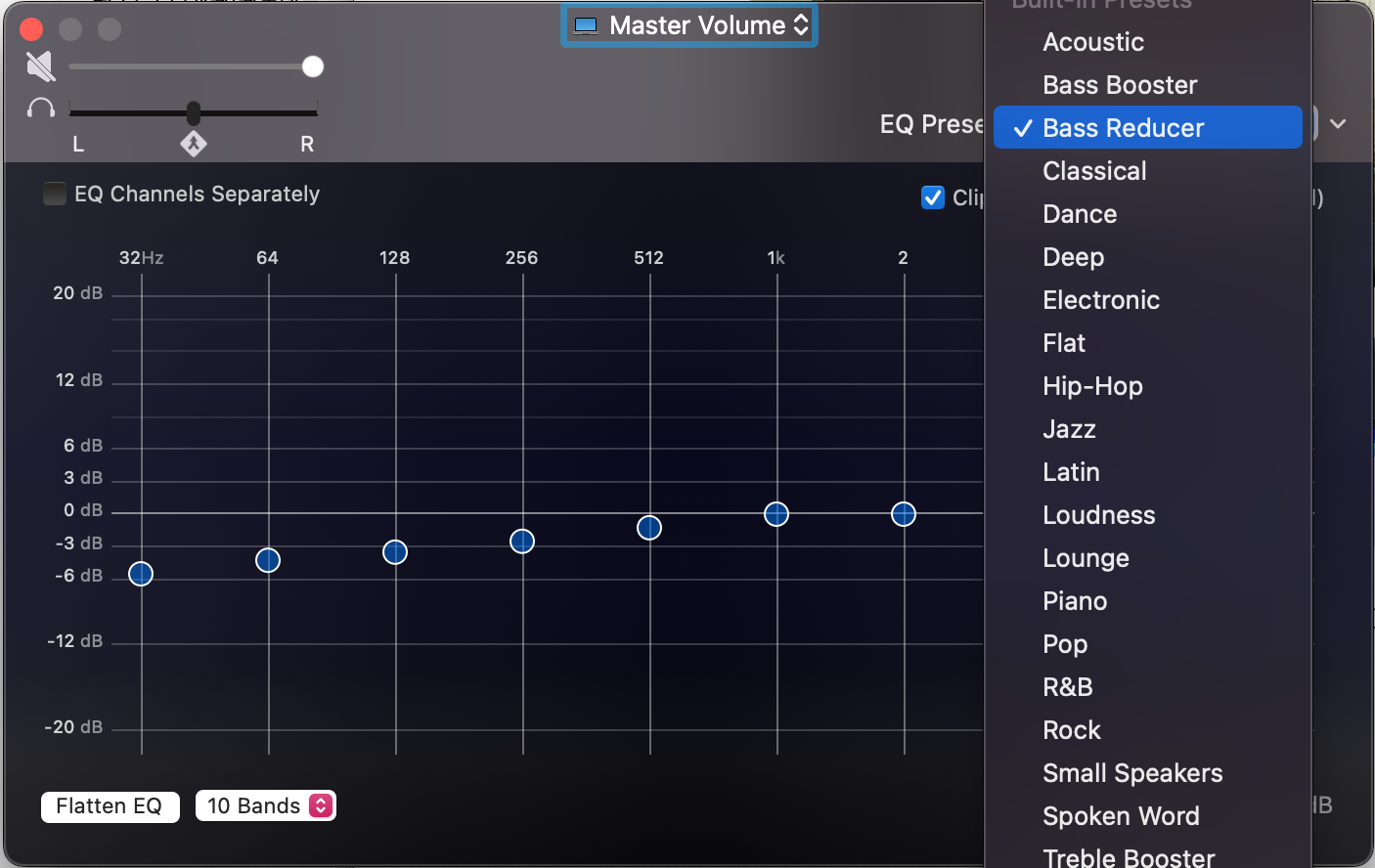 이퀄라이저 프로그램들을 이용해 보기도 하였는데요. eqMac은 무료인데 종종 앱이 멈춰버리는 문제가 있었습니다. Sound Control은 며칠간 무료로 사용 가능하고 이후에는 구입해서 사용해야 합니다. 이퀄라이저를 이용해서 저음 부분을 좀 약화시켜 주면 도움이 되었습니다.