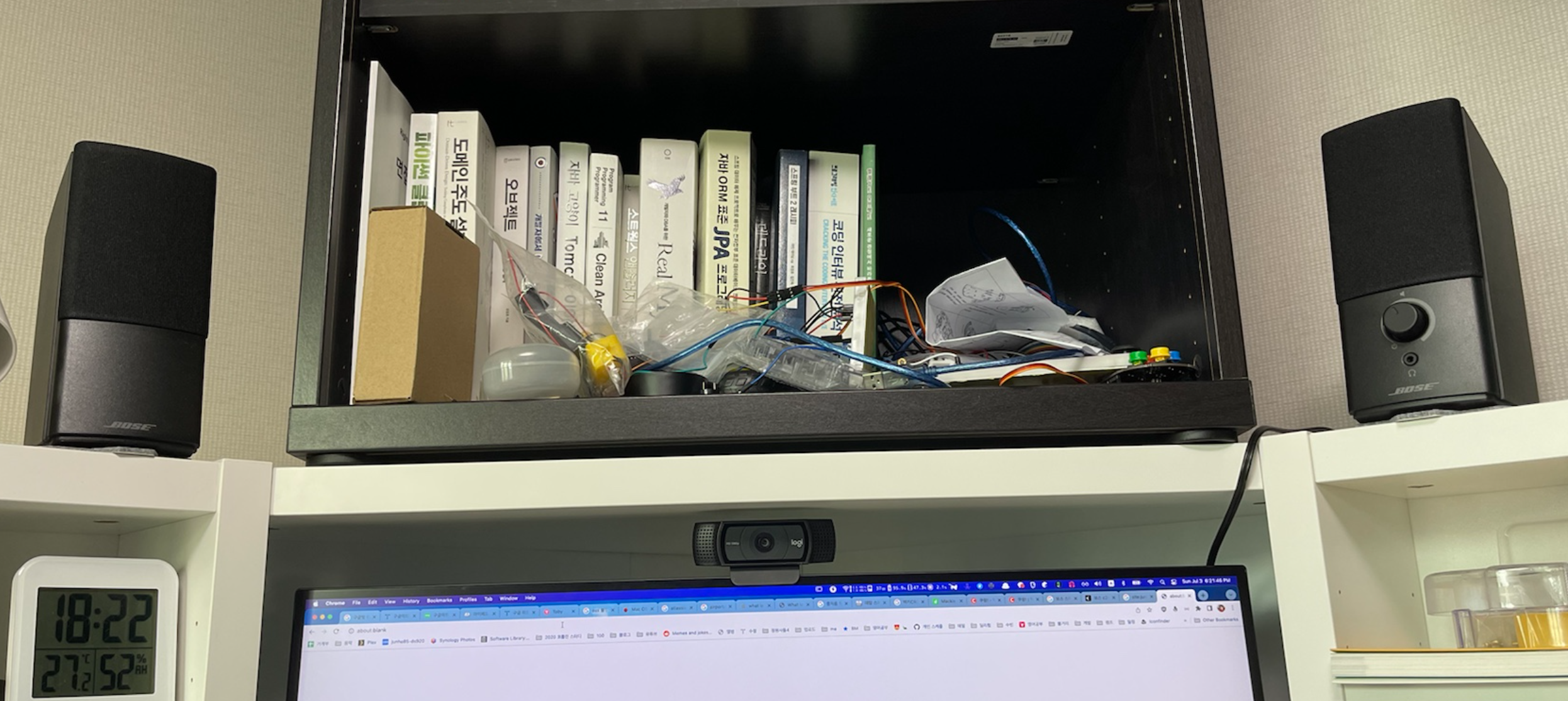Boss C2S3를 어떻게 잘 조정하다 보면 좀 더 만족스러운 설정을 할 수 있었을지도 모르겠습니다. 하지만 제 실력이 부족한 탓인지 노력 대비 성과가 안 나와서 그냥 애들 방에 세팅해 줬던 저렴이 스피커를 들고 왔습니다.