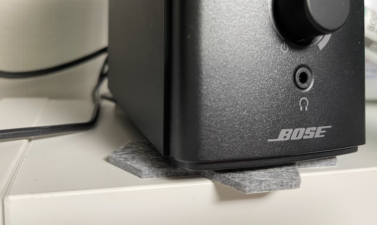저음이 좀 강하다 보니 음악을 틀어 놓고 거실에 나가 보니 둥둥 거리는 소리와 진동이 느껴지더군요. 가족들에게도 민폐를 주고 혹여 층간소음이 생길 수도 있을 거 같았습니다. 다행히 바닥에 소음방지패드를 몇 개 깔아 두니 좀 낫더군요.