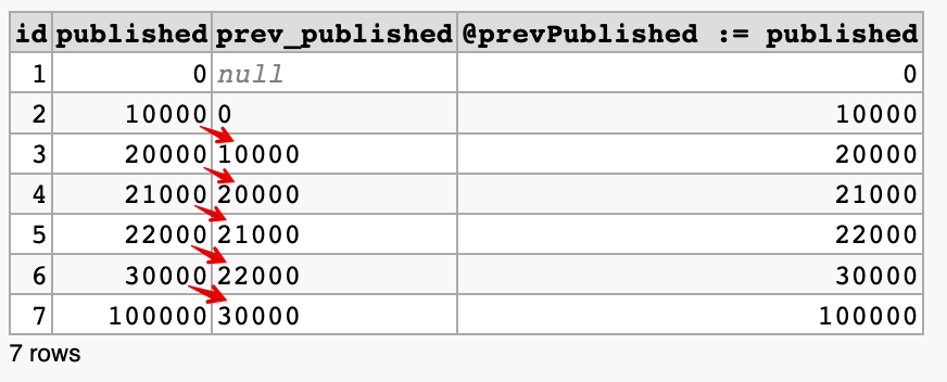MySQL에서 이전 레코드의 값을 참조하기. 이전 레코드와 비교하는 방법. MySQL 5.7 방식과 MySQL 8 방식 본문