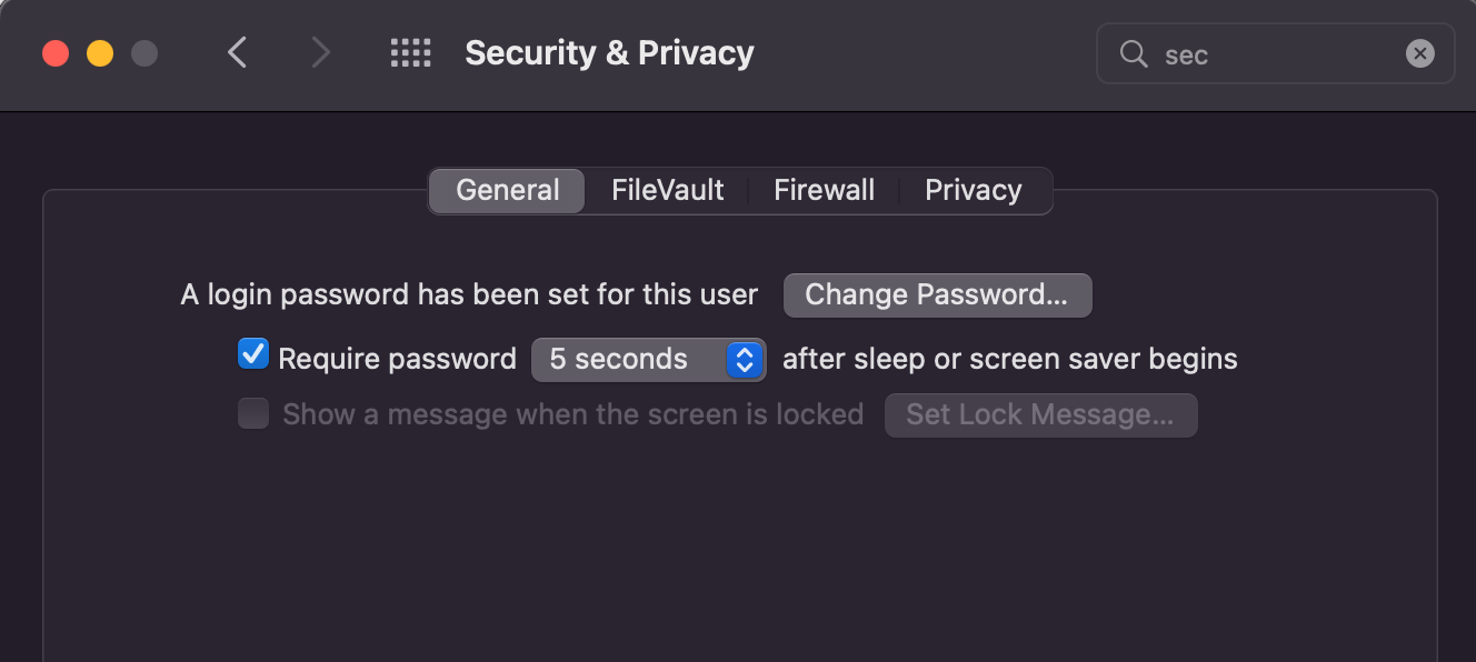 그럴 때는 일단 "Start Screen Saver"를 걸어 두고 "System Preferences > Security & Privacy > General"설정에서 "Require password 5 seconds after sleep or screen saver begins"를 설정합니다.