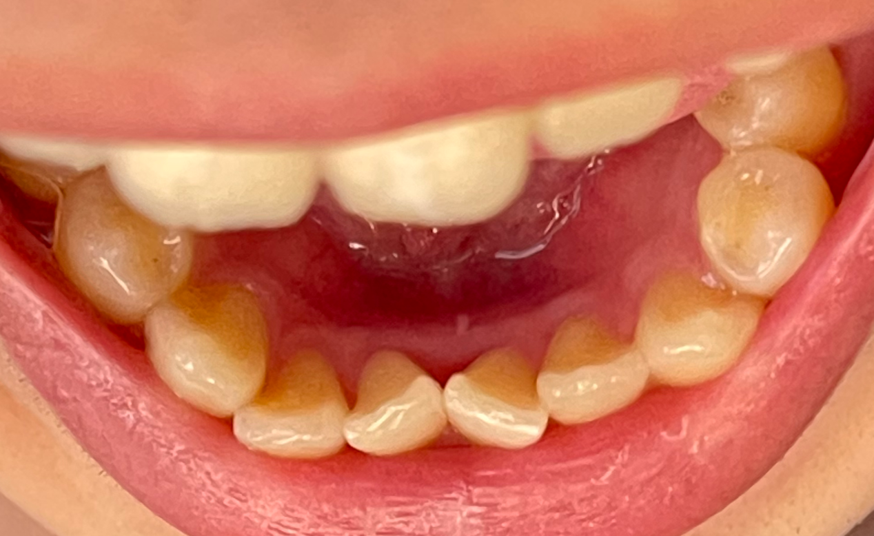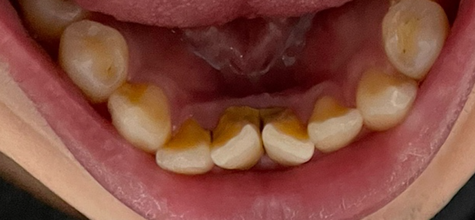 저는 치석이 주로 앞니 안쪽 편에 많이 있었는데요. 제 치석 사진입니다. (혐 주의)