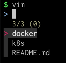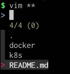 vim CTRL + T를 입력하면 현재 경로 아래로 파일리스트가 나오고 화살표로 선택한 다음 엔터 치면 vim <파일명>이 입력됩니다.