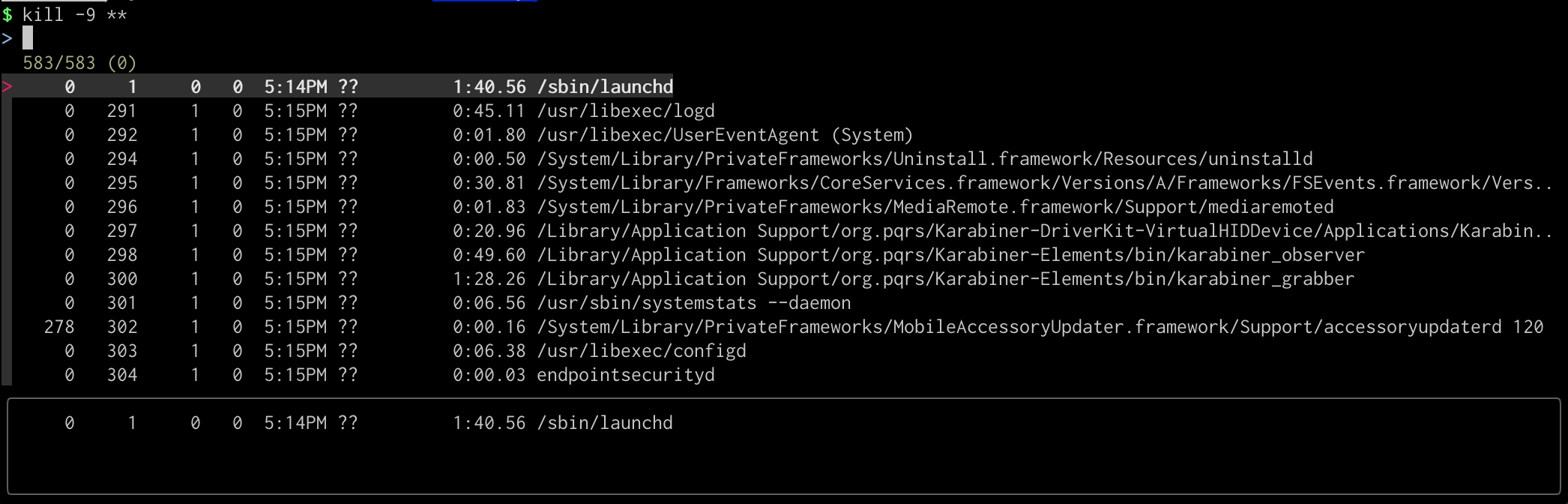kill -9 **<tab> 하면 프로세스 리스트가 주르륵 나타납니다.