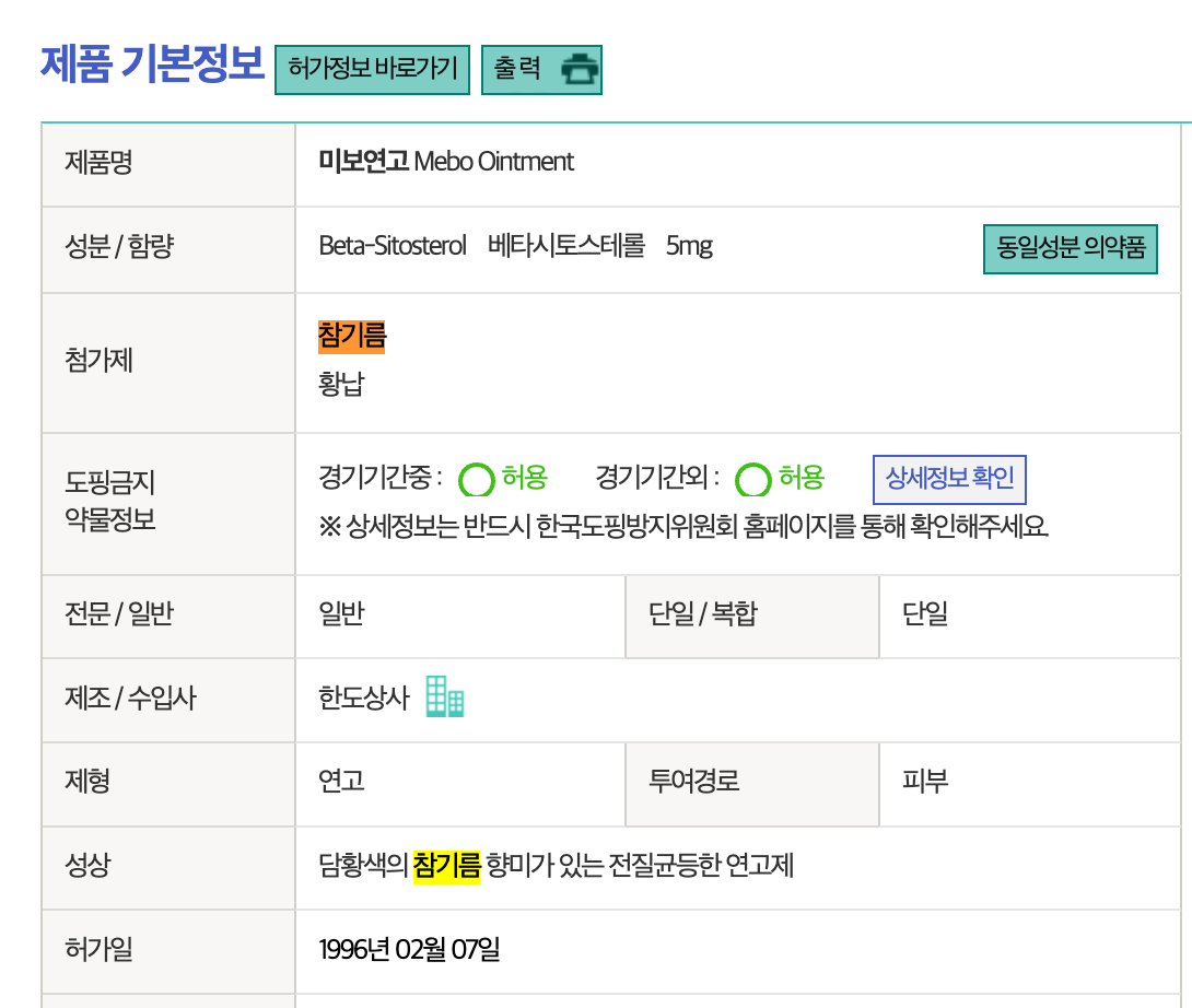 기타. 참기름 냄새나는 연고는 정말 참기름이 들어간다