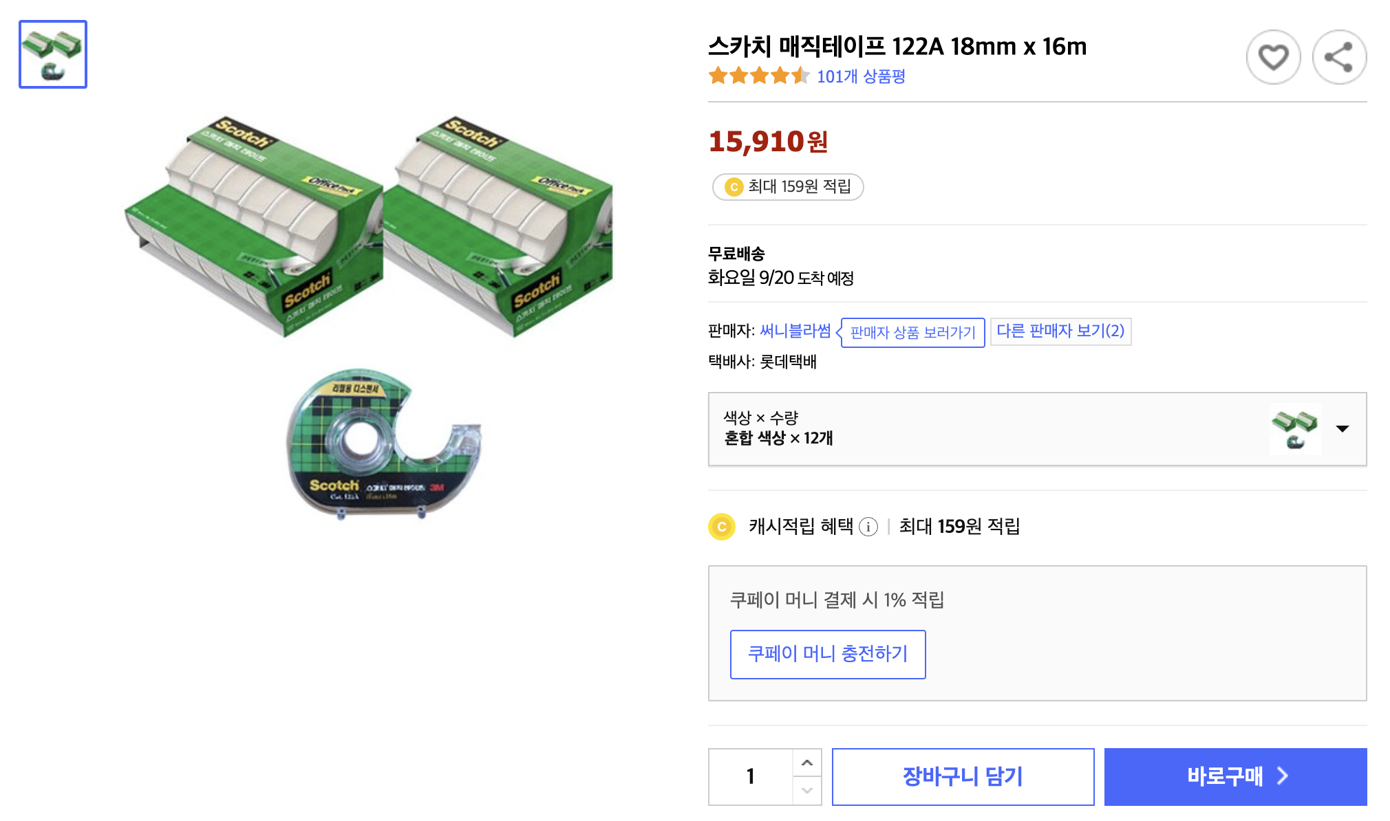 스카치 매직테이프 122A 18mm x 16mm 재구매. 최저가를 찾아서