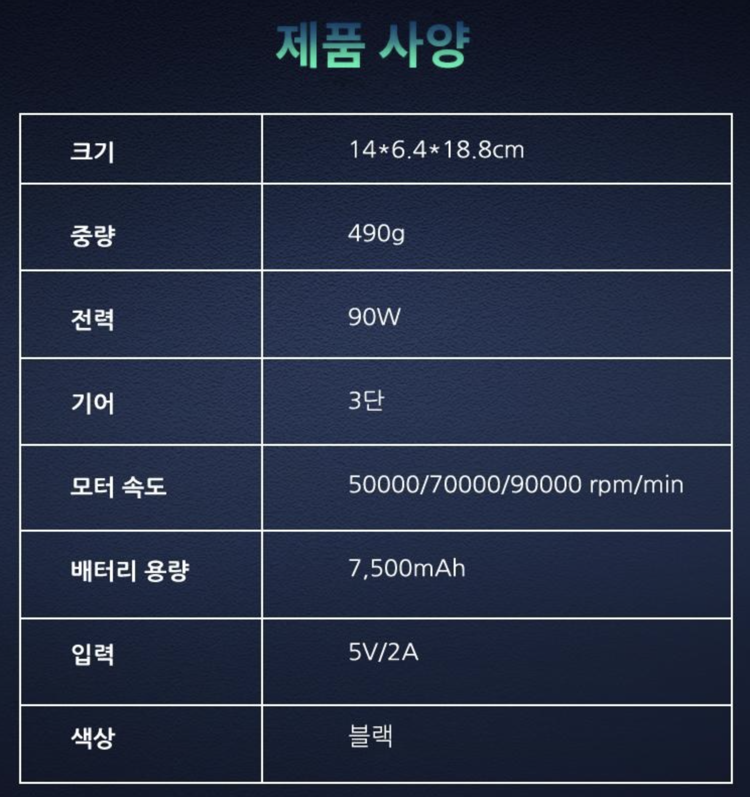 타사 제품들은 보통 RPM이 3만 정도인 경우가 많은데 9만은 어느 정도 뻥이 섞여 있다고 해도 높은 수준을 기대해 볼 수 있을 거 같습니다.