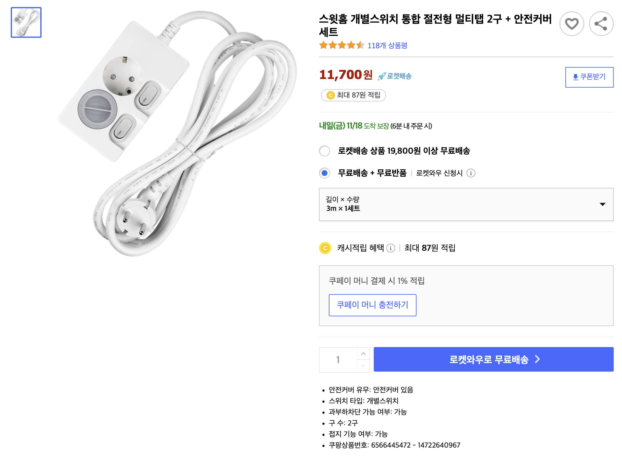 조금 더 비싸긴 하지만 과부하차단기능이 있는 제품입니다.