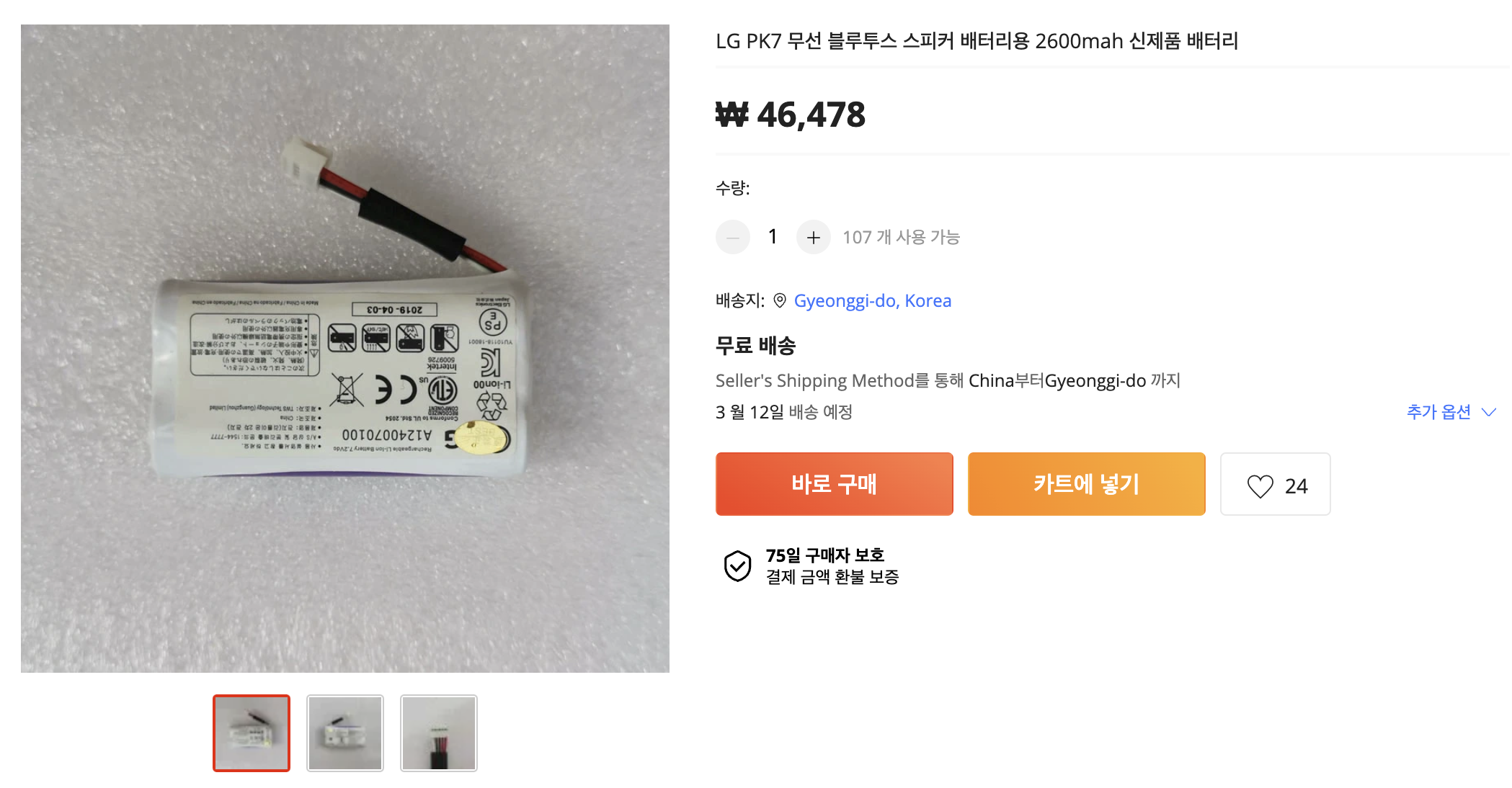 알리익스프레스 같은 곳에서 PK7 배터리를 검색해 보니 4만 원대 정도 하는 것으로 보였습니다.