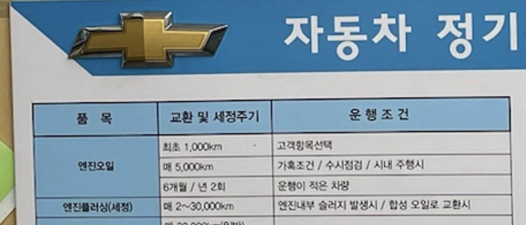 매 5,000km라고 적혀 있기는 하지만 쉐보레 홈페이지에는 1년마다 라고 나와있습니다.