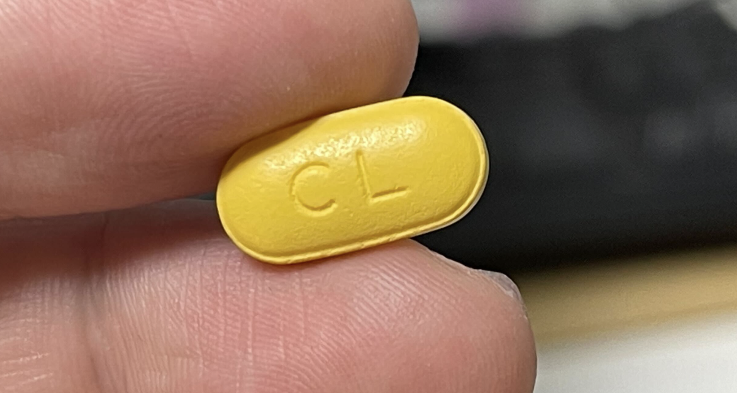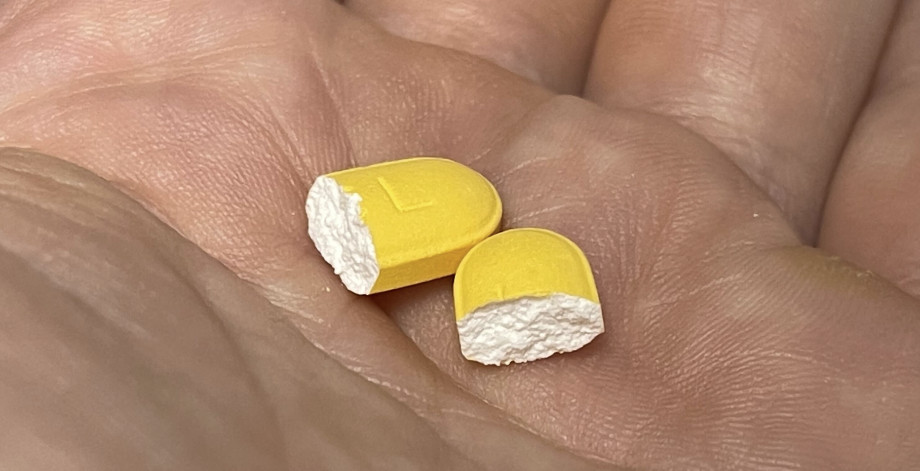 앞서 반으로 갈아 보았던 겉은 노랗고 안은 하얀 알약입니다.