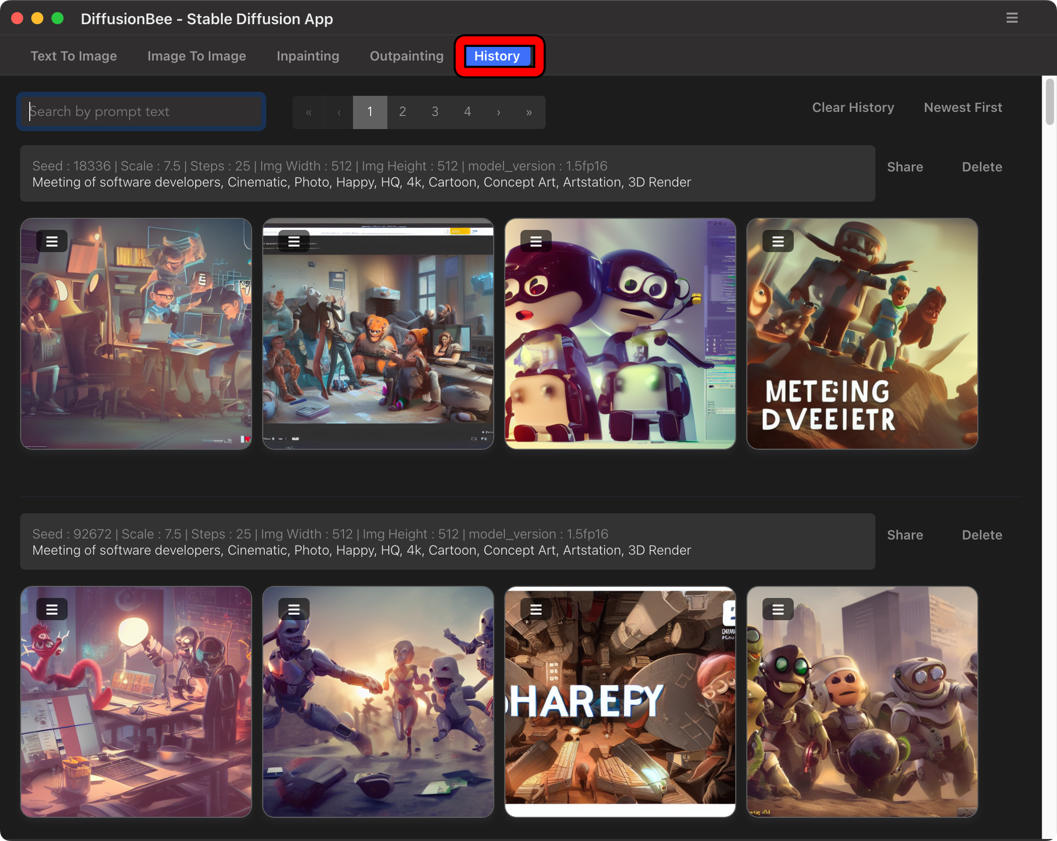 History에 가보면 이제껏 생성했던 이미지들이 남아 있습니다.