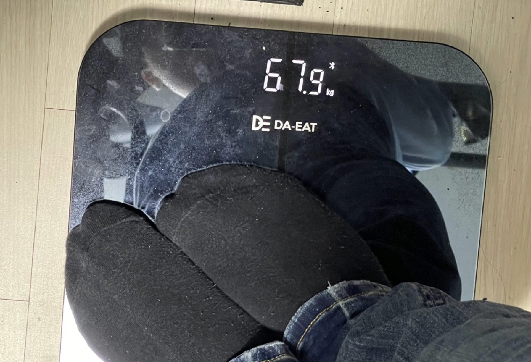 점심때 즈음 체중을 측정해 보니 옷 입고 67.9kg입니다. 옷이랑 휴대폰 무게가 대략 1.5kg 정도이기 때문에 실제 몸무게는 66.4kg 정도로 예상됩니다.