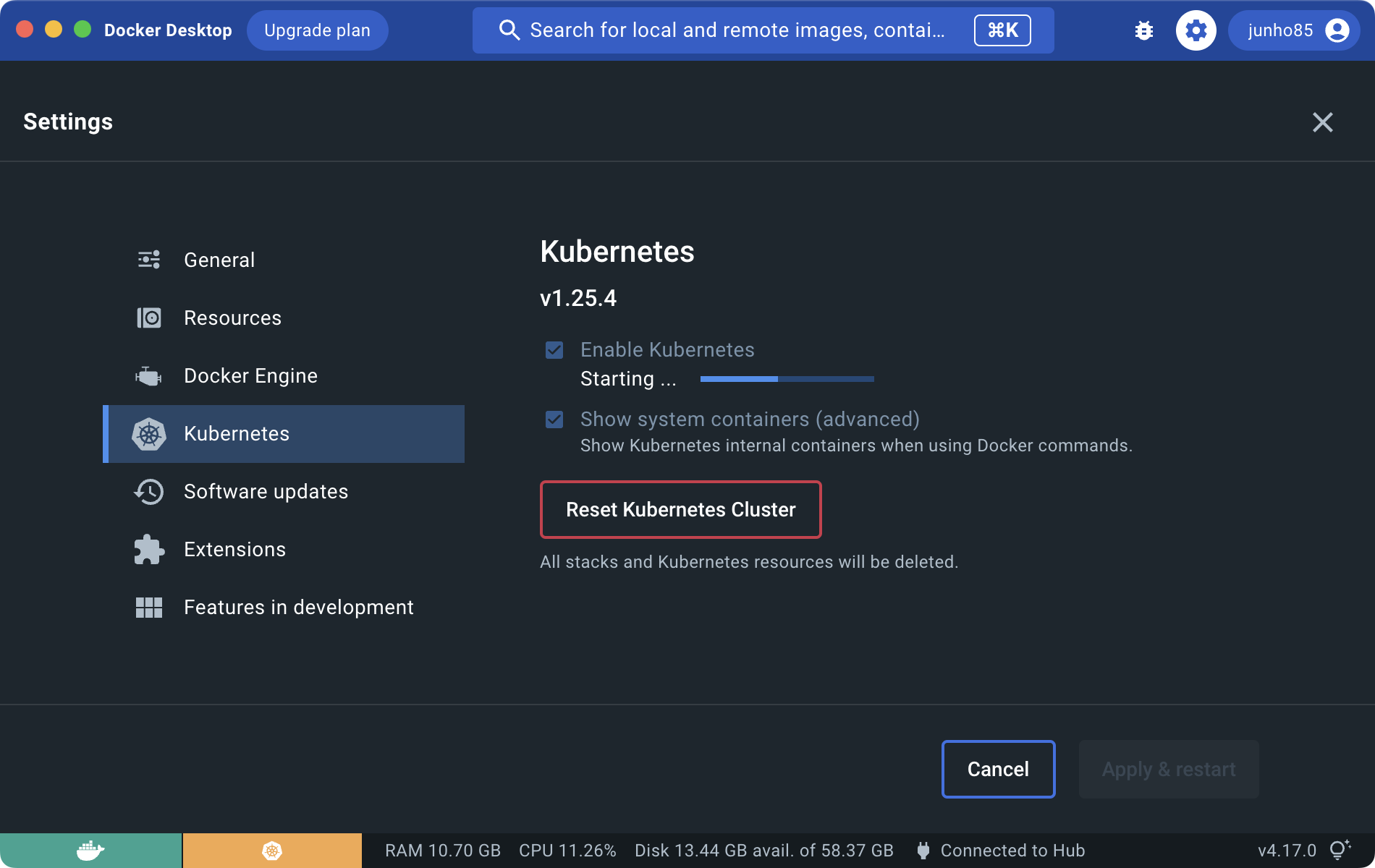 Docker Desktop Kubernetes가 Starting... 에서 진행이 안될때 본문