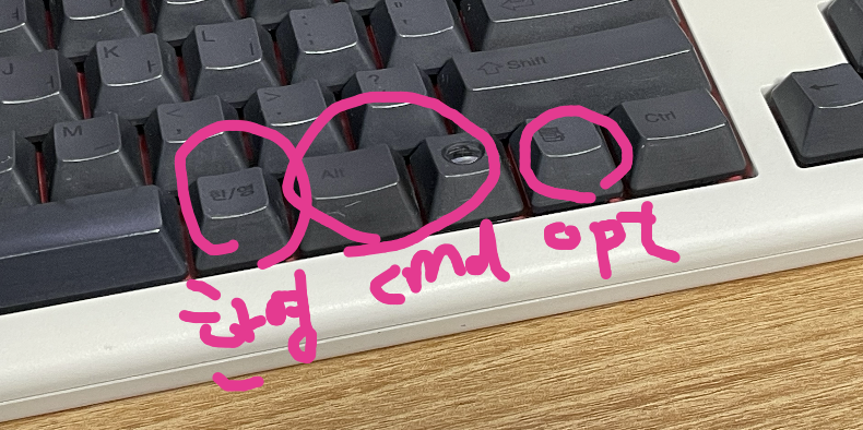 (2023.06.07 코멘트. cmd를 두 개 잡고 있었는데 cmd는 하나로 잡고 opt를 두 개 잡도록 변경했습니다. 왼쪽의 윈도키도 opt이기 때문에 오른쪽의 윈도키도 opt가 되는 것이 적절해 보였습니다. 문서키는 일단 opt로 유지하고 있는데 이거도 뭔가 바꾸는 게 좋을지는 고민되네요.)