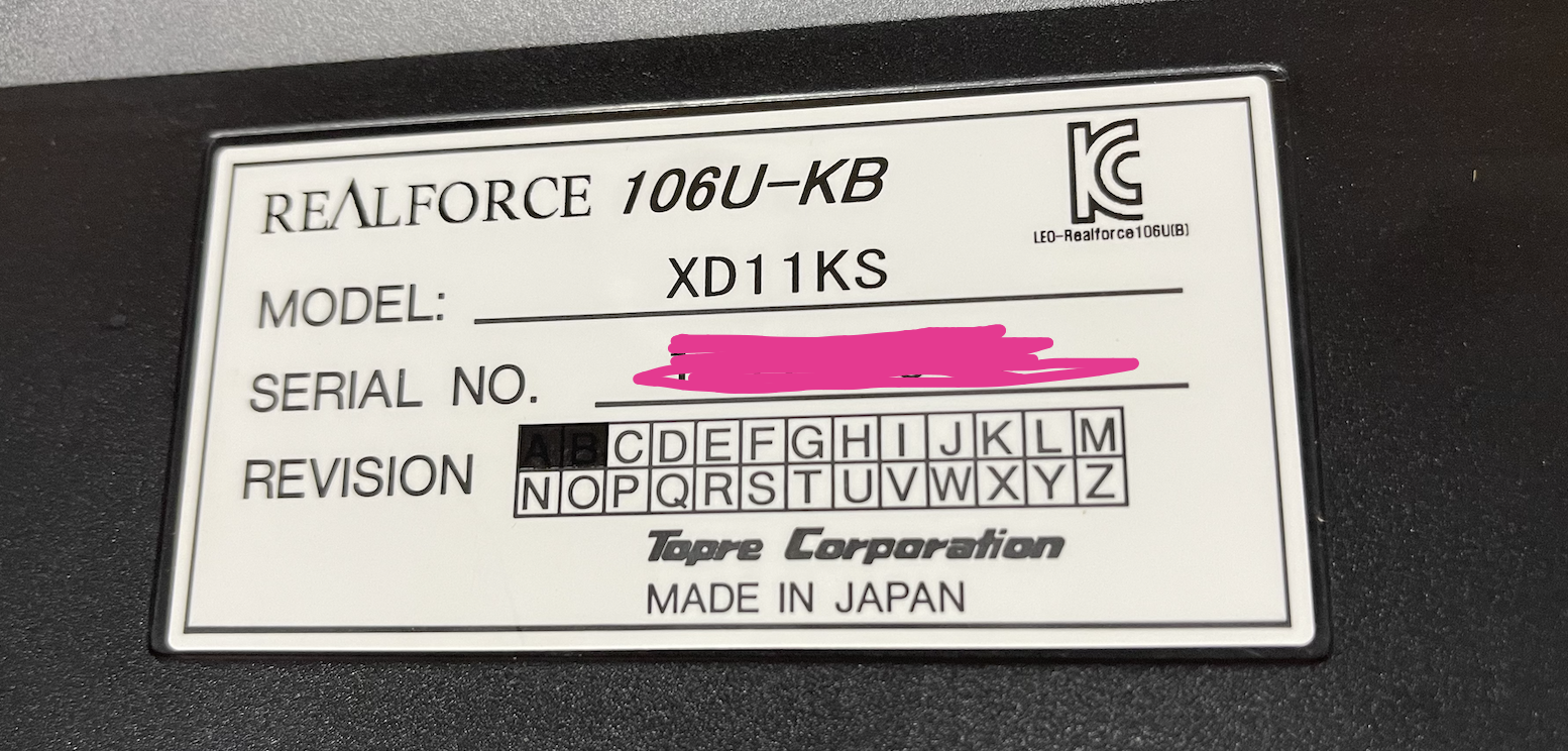 Realforce 106U-KB 제품인데 Model은 XD11KS라고 적혀있네요.