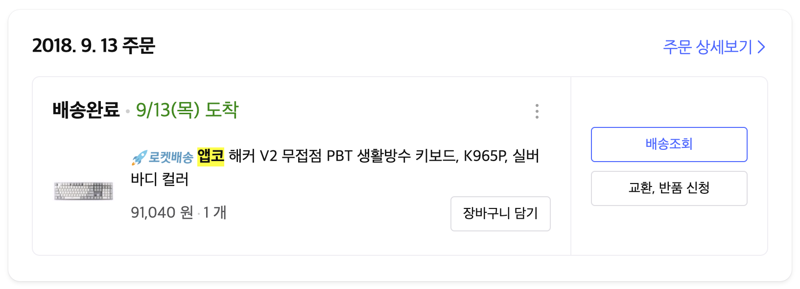 파손된 앱코 해커 V2 무접점 키보드 K965P V2 본문