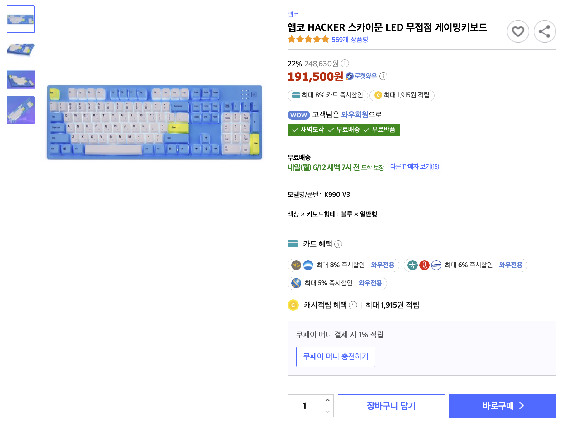 후속 키보드로 현재 K990 V3, K995P V3 같은 제품들이 보이네요. 가격이 20만 원 정도로 꽤 비싸네요.