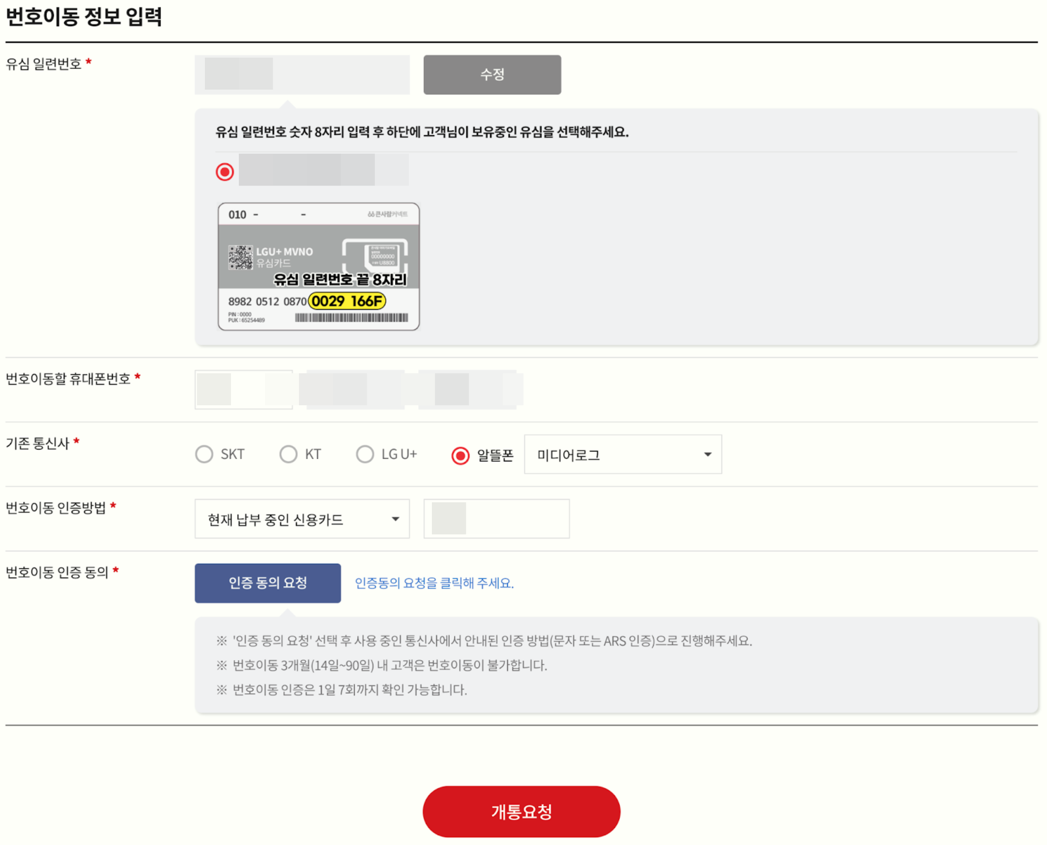 지금은 그냥 알뜰폰 사이트에서 번호이동이나 신규가입을 모두 완료할 수 있습니다.