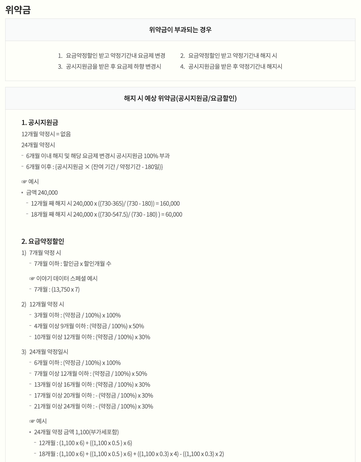 위약금에 대한 설명이 나와있는데 혹시 중간에 해지할 수도 있다면 주의 깊게 살펴보는 것이 좋겠습니다.