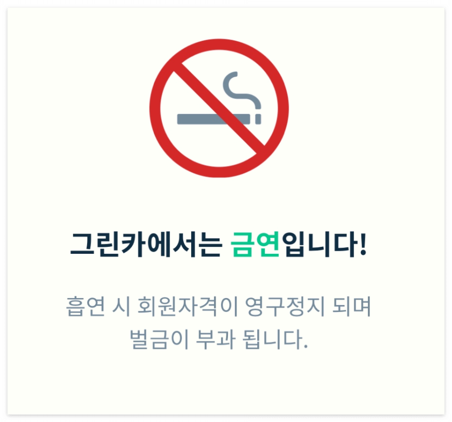 차량을 대여하면 금연 경고 메시지가 나오는데요.