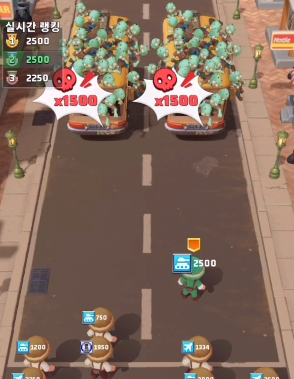 마지막에 종말의 엘리트 군단이 버스를 타고 돌진하는데요. 좀비들의 수 보다 내 점수가 높으면 살아남을 수 있습니다.