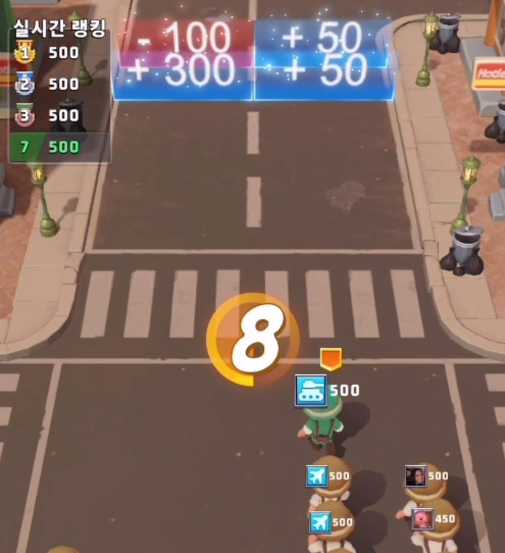 처음에는 간단한 계산이 나옵니다. 왼쪽, 오른쪽에 현재 선택한 플레이어들이 나옵니다. 쉬운 문제임에도 틀린 답을 선택하는 플레이어들이 꽤 있는데요. 아마 딴짓을 하고 있거나 그냥 게임 횟수만 채우기 위해 플레이만 돌려두고 있는 것이 아닐까 싶습니다.