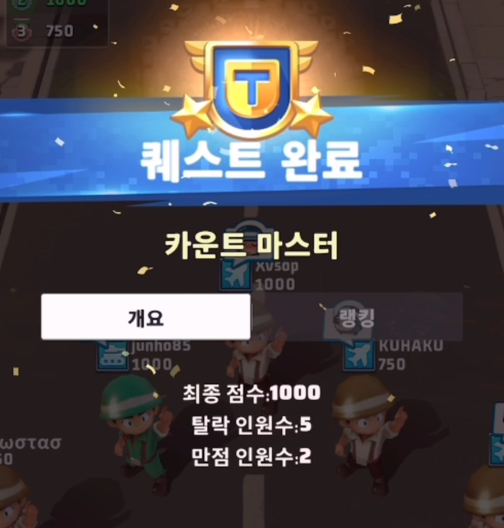제 점수는 2500점이고 좀비는 1500명이기 때문에 1000이 남아서 살아남았습니다 ^^;