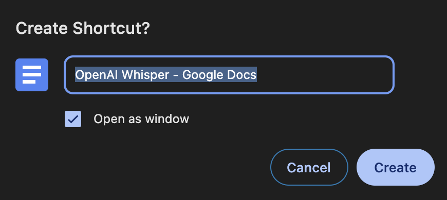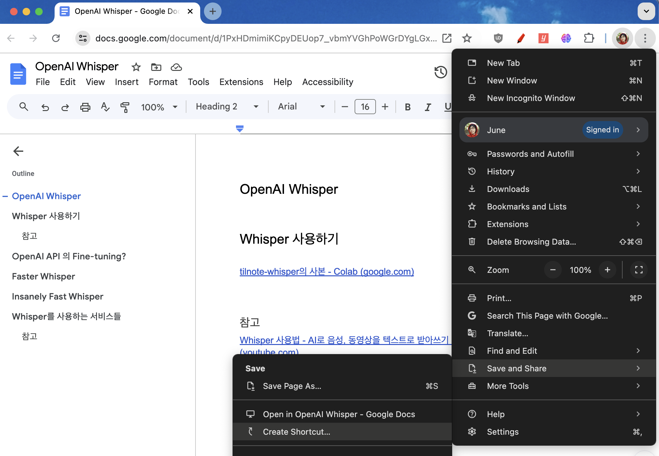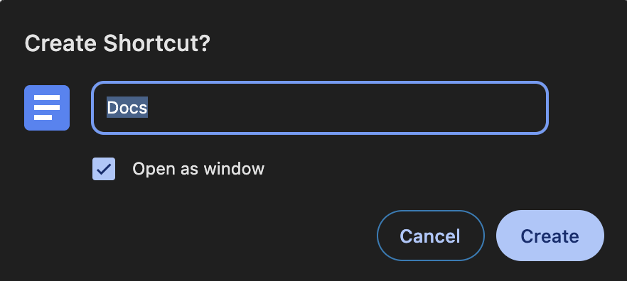 크롬앱을 만들어서 사용하다 보면 어떤 사이트들은 현재 위치가 아니고 특정 위치로만 앱이 생성되는 것을 볼 수 있습니다. 예를 들어 구글독스에서 특정 문서를 띄운 상태에서 앱을 만들어 봅니다.