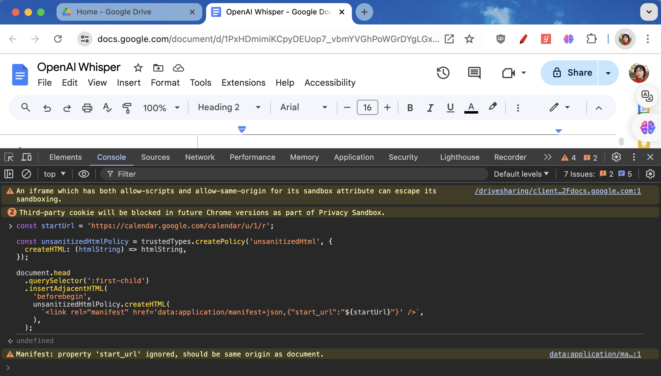 크롬앱을 만들어서 사용하다 보면 어떤 사이트들은 현재 위치가 아니고 특정 위치로만 앱이 생성되는 것을 볼 수 있습니다. 예를 들어 구글독스에서 특정 문서를 띄운 상태에서 앱을 만들어 봅니다.