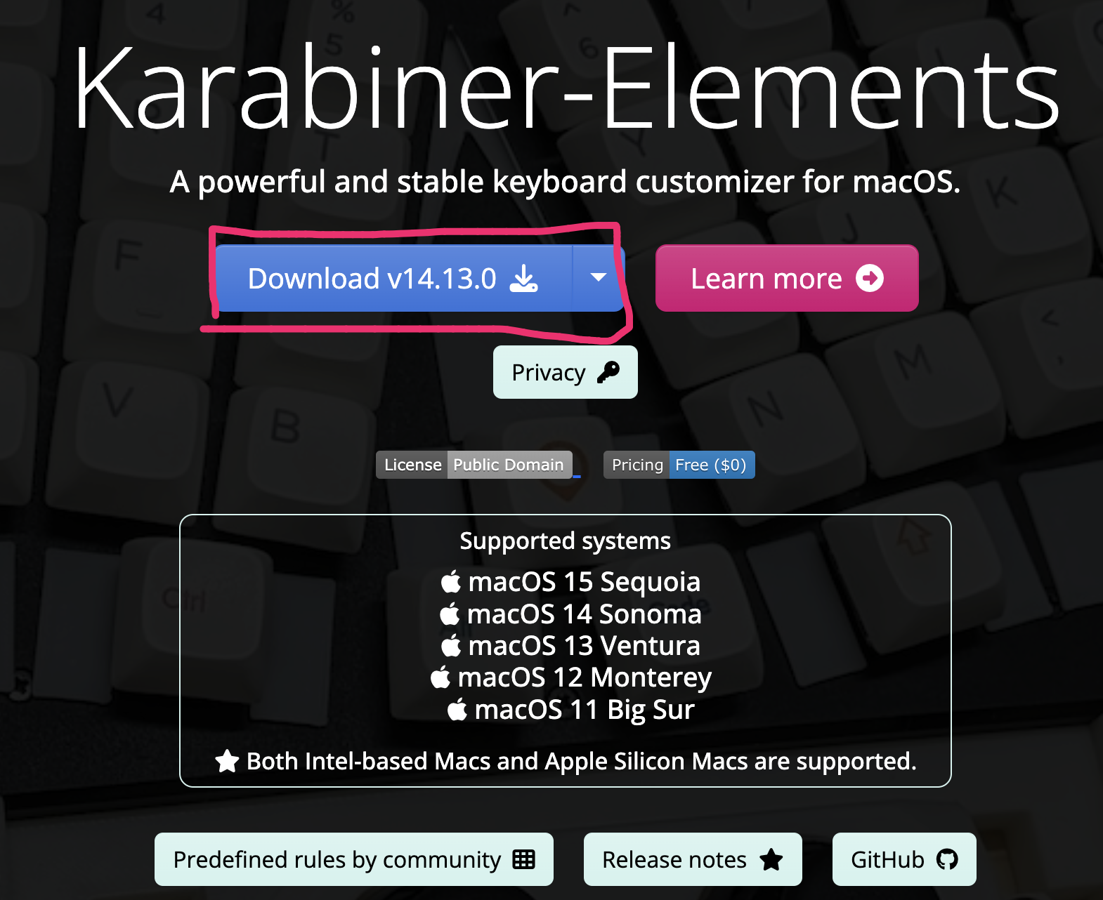 Karabiner-Elements 공식 사이트에 접속하여 Karabiner-Elements 앱을 다운로드합니다.