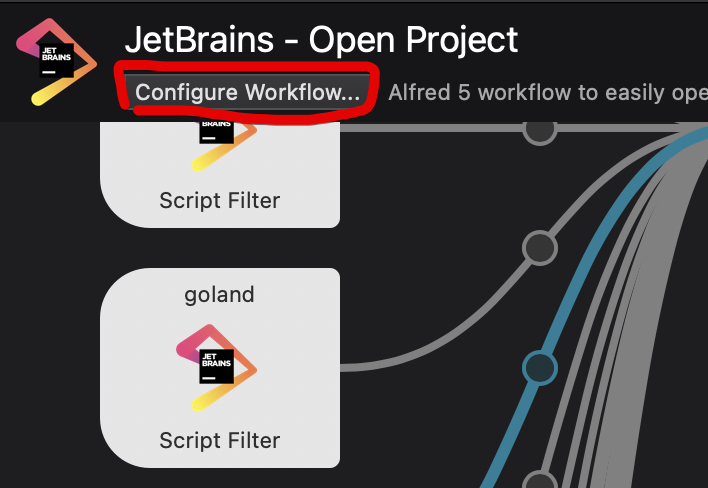 설정 방법은 다음과 같습니다. Workflows > JetBrains - Open Project > Configure Workflow 버튼을 클릭합니다.