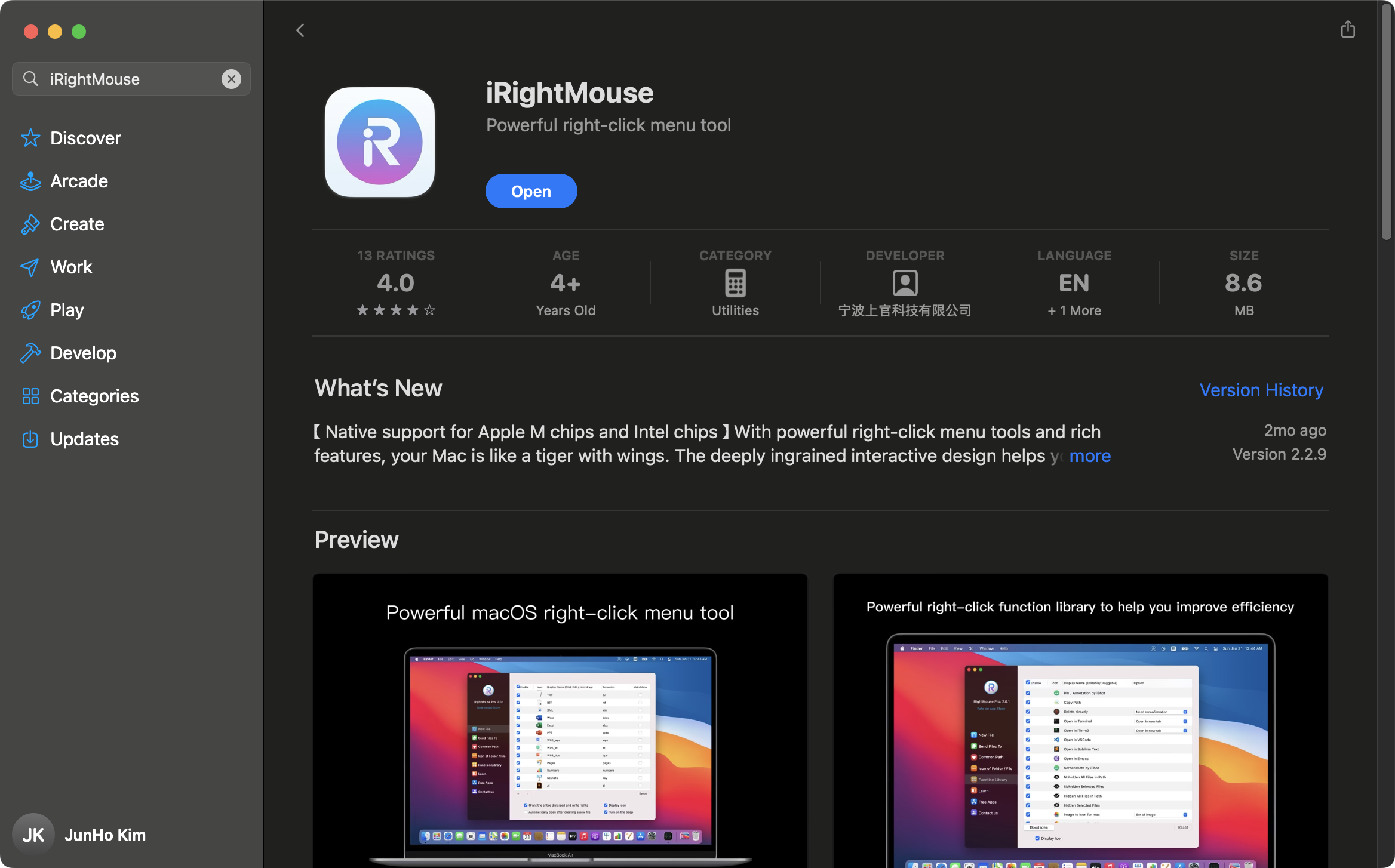 iRightMouse는 macOS의 콘텍스트 메뉴(우클릭 메뉴)를 확장하는 유용한 도구입니다. 이 앱을 사용하면 Windows 사용자들에게 익숙한 여러 기능을 macOS에서도 쉽게 사용할 수 있습니다.