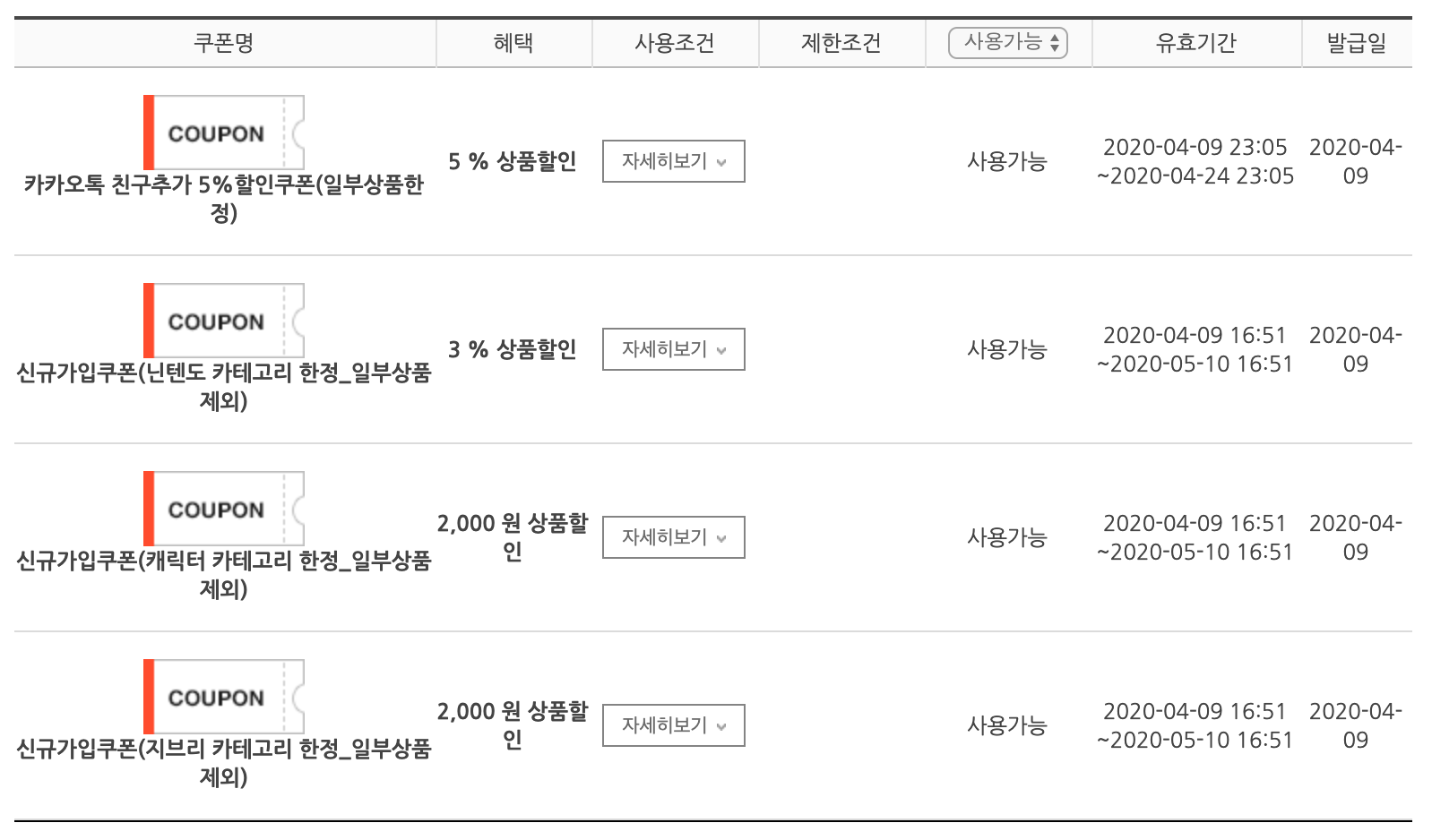 에에?? 사용할 수 있는 쿠폰이 없네요. 뭔가 낚인 기분입니다.